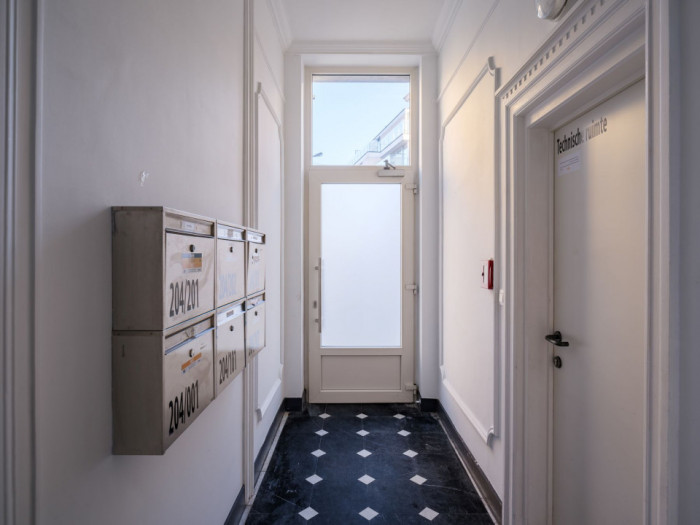 De studio is gelegen op de 2de verdieping, instapklaar en omvat o.a. woonruimte met open keukenhoekje | geînstalleerde badkamer met toilet | privatieve kelderberging.