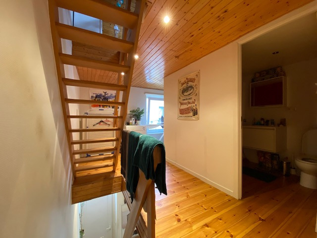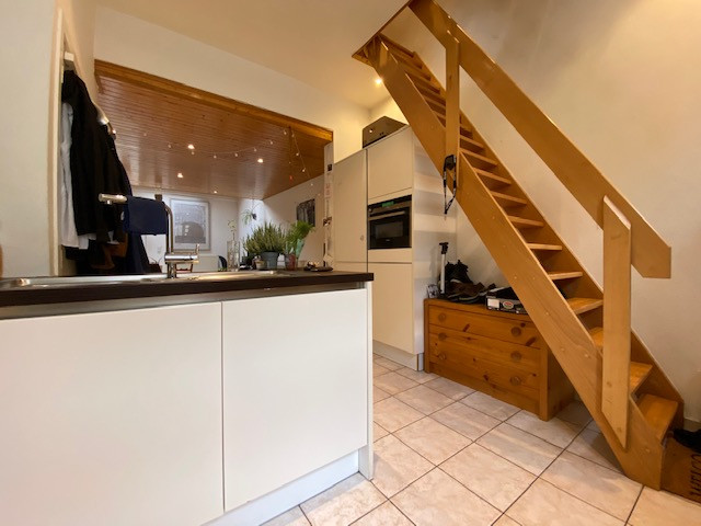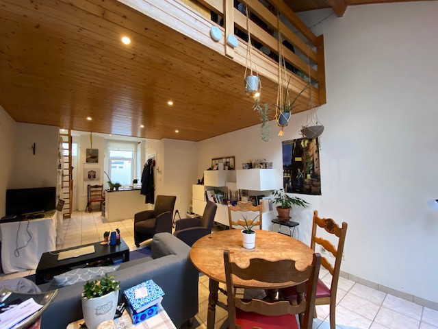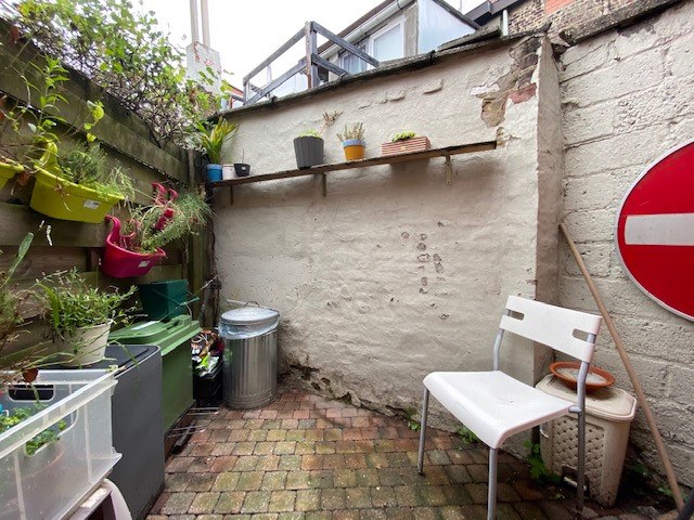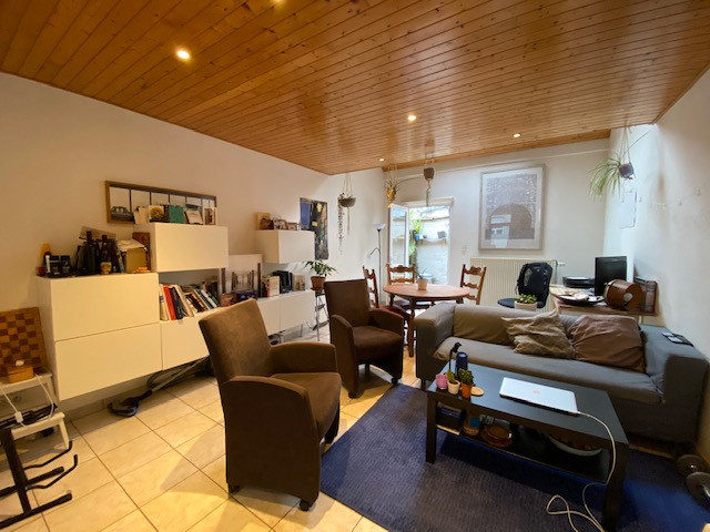 De woning zelf is volledig instapklaar en omvat een ruime woonkamer met keukenhoek en leefruimte, die uitgeeft op een aangenaam privatief koertje. Op de eerste verdieping bevindt zich een gezellige mezzanine of extra living met aansluitend de badkamer, terwijl de slaapkamer zich op de tweede verdieping bevindt.