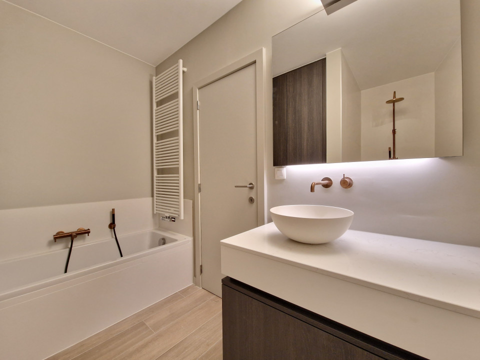 Het appartement beschikt over drie comfortabele slaapkamers en een luxueuze badkamer met zowel een ligbad als een inloopdouche. In de kelder is er bovendien een handige private berging inbegrepen, en het geheel wordt compleet gemaakt met een autostaanplaats, wat het wooncomfort nog verder verhoogt.