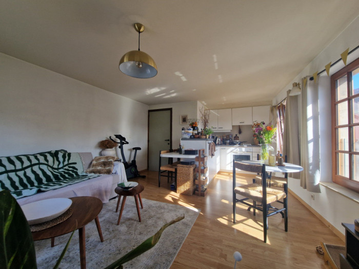 Het appartement is praktisch ingedeeld en biedt een aangename woonervaring. U komt binnen via de inkomhal die toegang geeft tot de verschillende ruimtes. De ruime slaapkamer zorgt voor voldoende rust en comfort. De badkamer bevat een douche, lavabo en een aansluiting voor de wasmachine. Verder beschikt het appartement over een lichtrijke en ruime woonkamer, met prachtig zicht, die naadloos overgaat in een open, praktische keuken – ideaal voor wie houdt van een gezellige leefruimte.