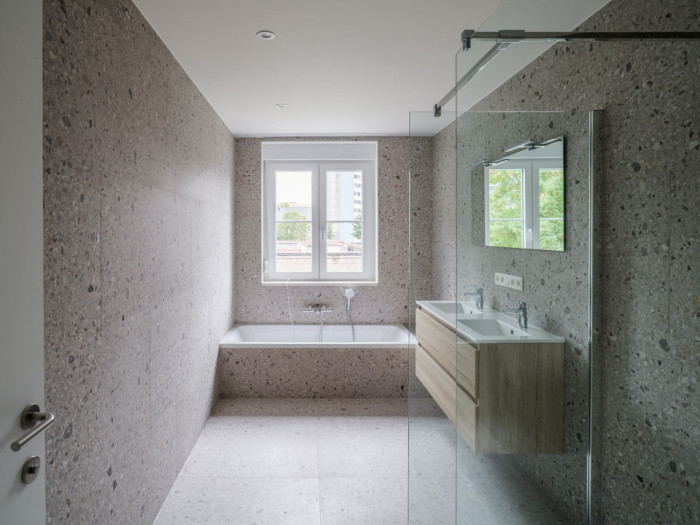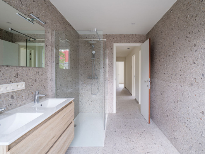 Op de eerste verdieping bevinden zich drie ruime slaapkamers, een apart toilet en een stijlvolle badkamer met ligbad, inloopdouche en dubbel lavabomeubel.