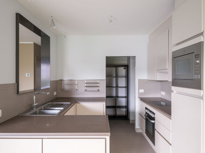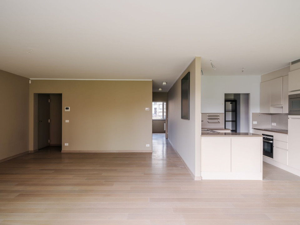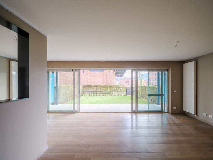 Bij het appartement hoort een gezellige stadstuin voor privatief gebruik, een ondergrondse kelderberging van ongeveer vijf vierkante meter en een dubbele privatieve fietsenstaander, terwijl er optioneel een privatieve dubbele garagebox met automatische poort kan worden aangekocht.
