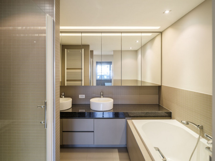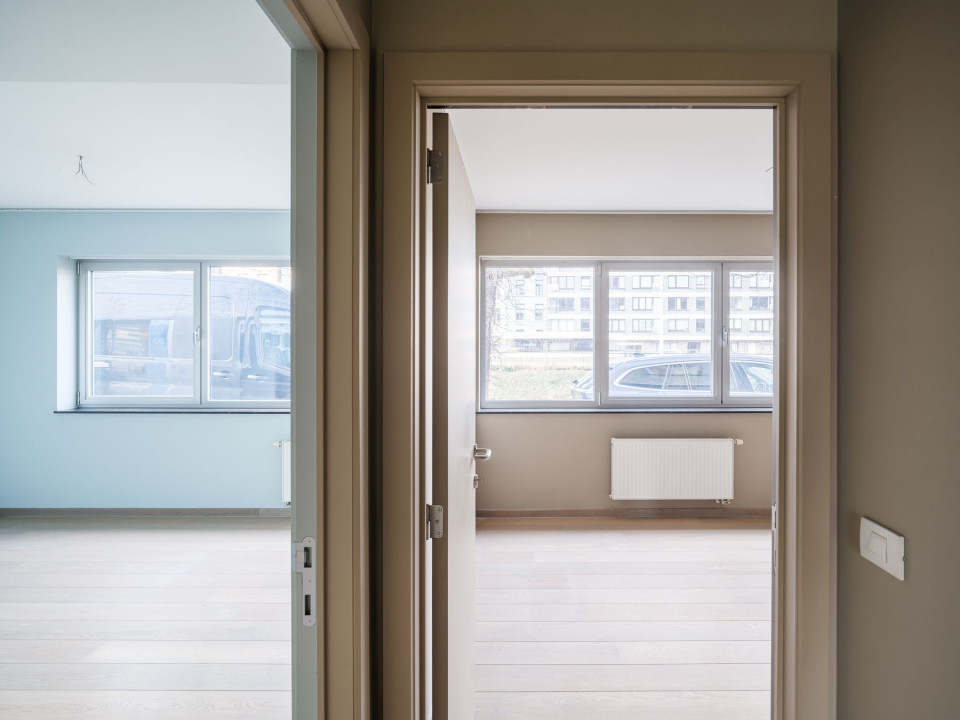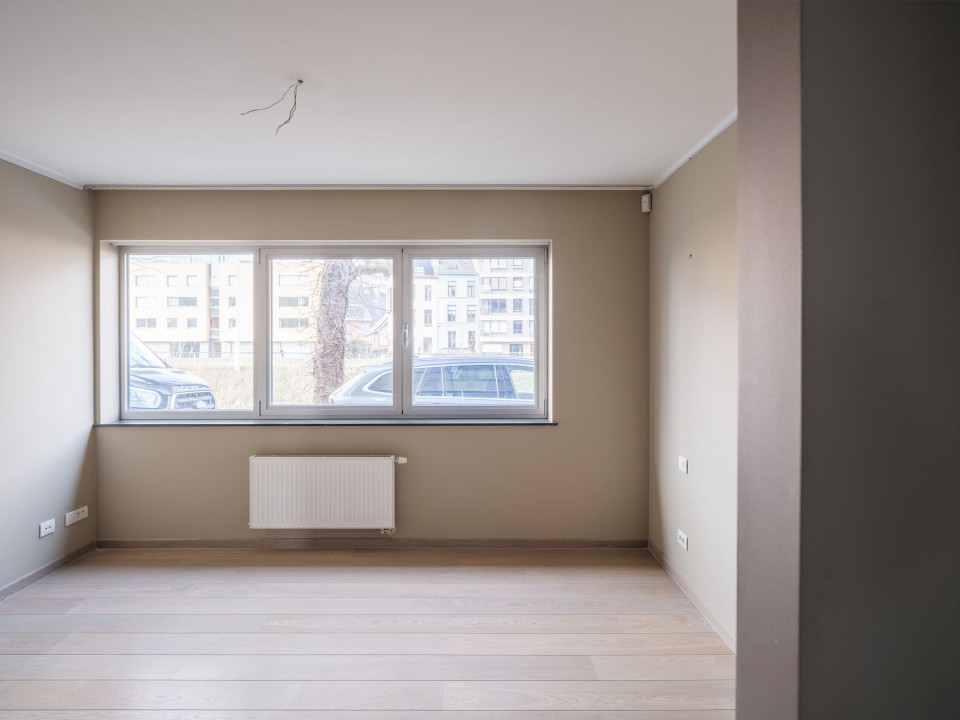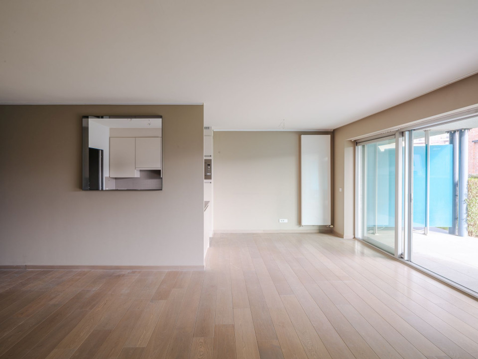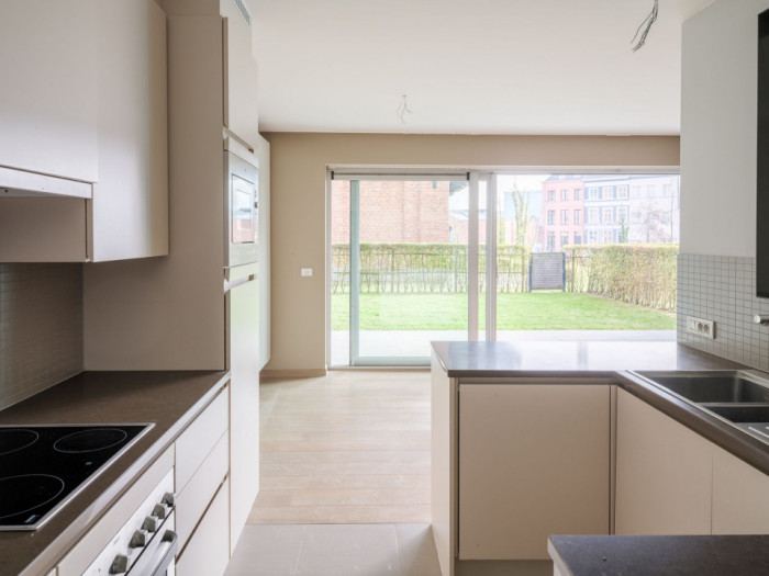 Het appartement is volledig instapklaar en beschikt over een ruime en lichtrijke leefruimte met directe toegang tot de stadstuin, een volledig ingerichte keuken met zicht op de tuin en het terras, een apart gastentoilet en een technische berging. De twee volwaardige slaapkamers zijn elk uitgerust met sanitair waaronder een ingerichte badkamer met ligbad, douche, dubbel lavabomeubel, handdoekdrager en ingemaakte kasten en een douchekamer met lavabomeubel en handdoekdrager, wat zorgt voor optimaal comfort en privacy.