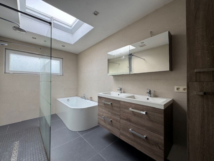 Op de bovenliggende verdiepingen bevinden zich vier volwaardige slaapkamers, ideaal voor een gezin of voor wie extra ruimte wenst voor hobby’s of logeerkamers. Daarnaast is er nog een extra kamer die perfect kan ingericht worden als bureau, dressing of tweede badkamer, afhankelijk van uw noden. De woning beschikt bovendien over een praktische kelder, ideaal voor extra opslagruimte.