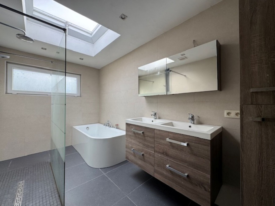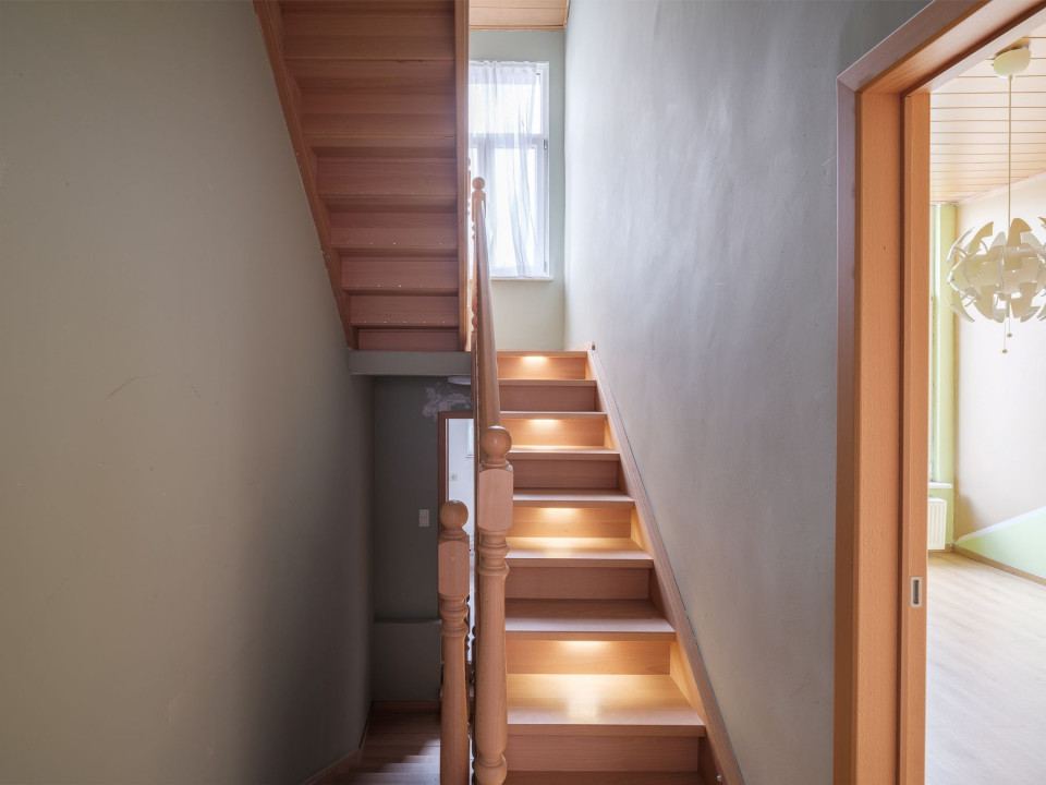 Bij het betreden van de woning valt meteen het ruime gelijkvloers op. Hier vindt u een gezellige leefruimte met aansluitende eetplaats die naadloos overgaat in een grote, moderne leefkeuken. De keuken vormt het kloppende hart van de woning en biedt directe toegang tot de gezellige stadstuin, waar u in alle rust kan genieten van zonnige momenten of gezellige avonden met familie en vrienden. Op het gelijkvloers bevindt zich bovendien een grote en luxueuze badkamer, afgewerkt met kwaliteitsvolle materialen en voorzien van alle hedendaags comfort.