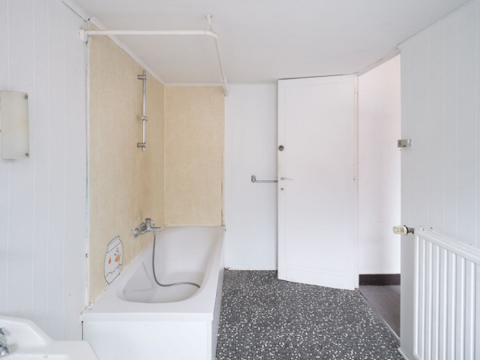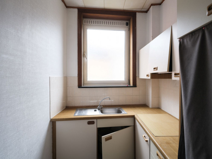 De keuken en sanitaire voorzieningen zijn aanwezig, maar kunnen naar hedendaagse normen opgefrist worden, wat u de kans geeft om deze woning volledig naar uw eigen stijl en wensen te renoveren. Achteraan de woning bevindt zich nog een praktische buitenruimte met bijgebouw/garage, wat extra opslag of parkeermogelijkheden biedt.