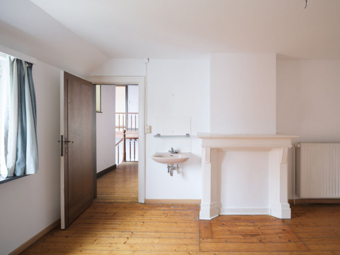 De woonst zelf ademt karakter en authenticiteit, met onder andere een prachtige houten trap, originele vloeren en hoge plafonds die een warm en ruimtelijk gevoel creëren. De leefruimtes zijn lichtrijk en bieden tal van mogelijkheden om naar eigen smaak te moderniseren. Op de verdiepingen bevinden zich meerdere ruime kamers, ideaal als slaapkamers, hobbyruimte of extra bureauruimte. De zolderverdieping met zichtbare houten balken biedt bovendien nog uitbreidingsmogelijkheden of kan ingericht worden als extra leefruimte.