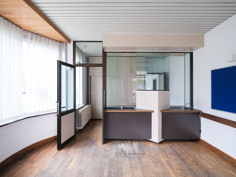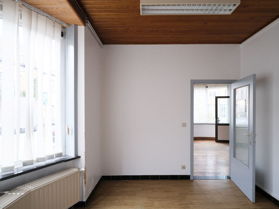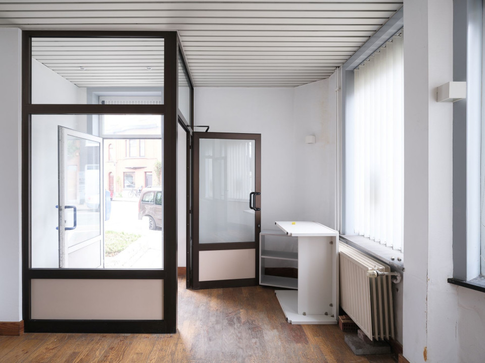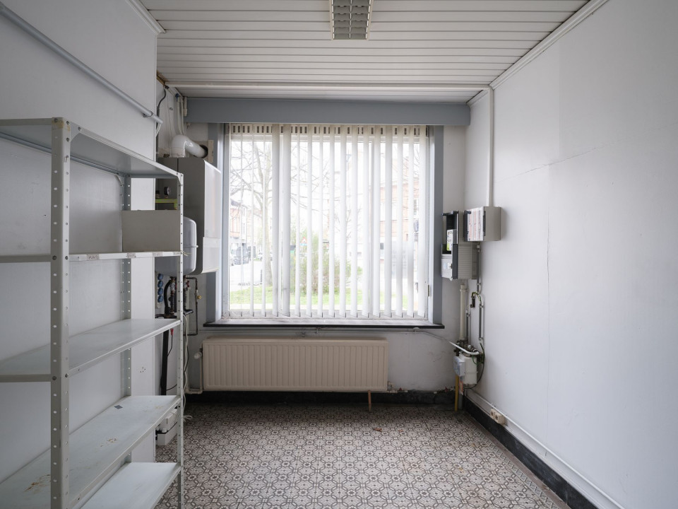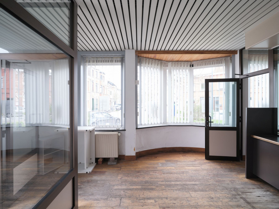 Bij het betreden van het pand komt u in een afzonderlijke kantoorruimte met een eigen toegang, waardoor privé en professioneel perfect gescheiden kunnen blijven. De grote raampartijen en praktische indeling maken dit gedeelte bijzonder geschikt als praktijkruimte, bureau of zelfs winkelruimte, afhankelijk van uw noden. De ruimte geniet van veel natuurlijk licht en beschikt over een functionele inrichting die eenvoudig aangepast kan worden.