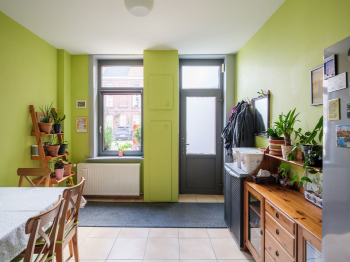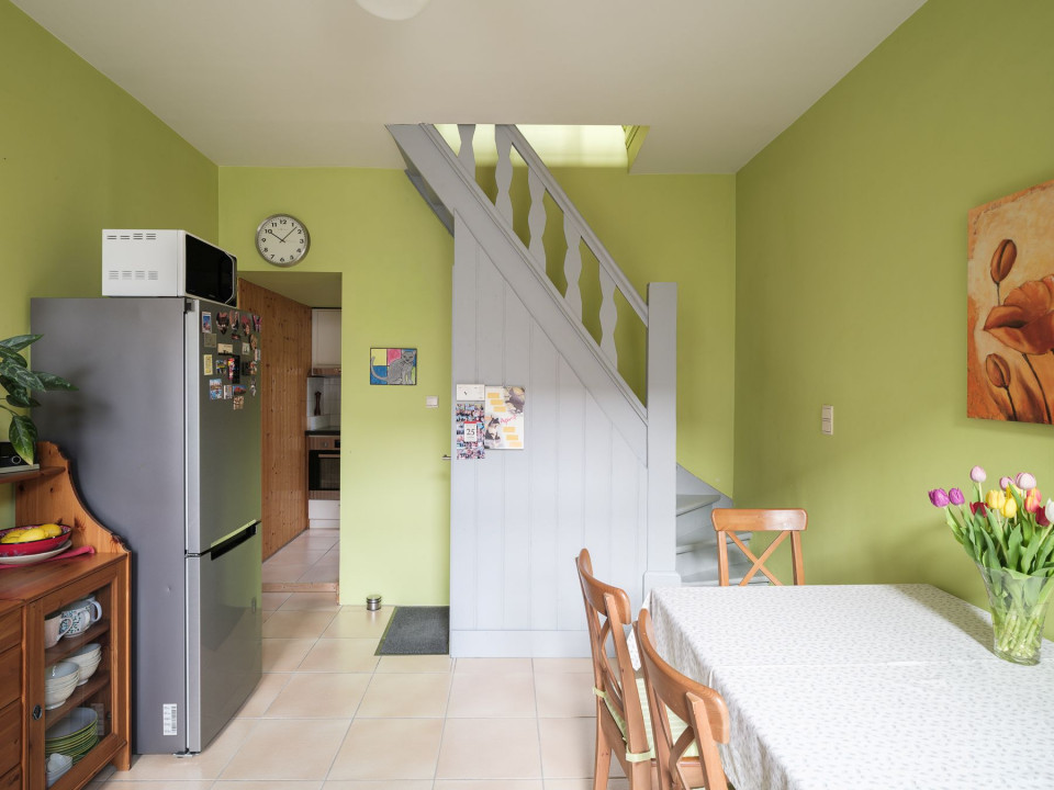 De woning werd de voorbije jaren op orde gebracht, ook inzake buitenschrijnwerk en dakisolatie en omvat o.a. een sfeervolle leefruimte met eetplaats, waar de frisse groene accenten en het natuurlijke licht zorgen voor een aangename, huiselijke sfeer. Aansluitend bevindt zich de keuken, die dankzij een lichtkoepel baadt in het daglicht. Verder vind je op het gelijkvloers een praktische douchekamer en toilet.