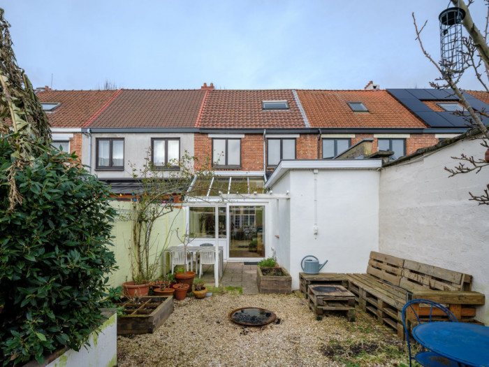 De woning omvat o.a.inkomhal | gezellige leefruimte en eetplaats | veranda met geÏnstalleerde keuken | kleine voorraad kelder | 2 slaapkamers op de 1ste verdieping | 1 slaapkamer op de 2de verdieping | badkamer met ligbad en toilet | terras | stadstuin. Bovendien geniet deze gezinswoning van een kleine privatieve strook voor de woning die kan omgetoverd worden tot kleine groene inkom zone.