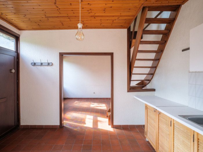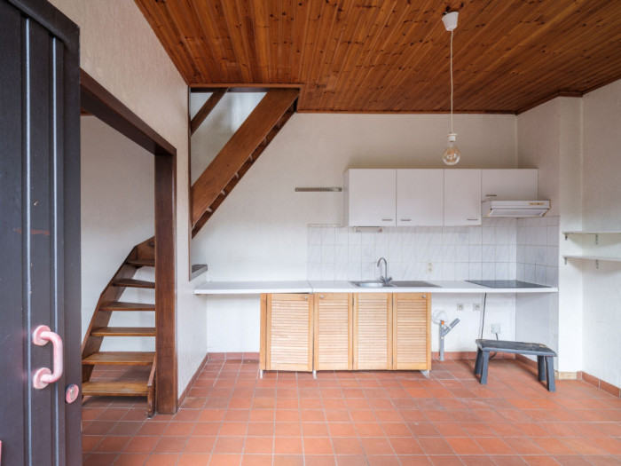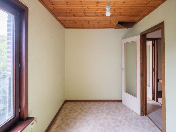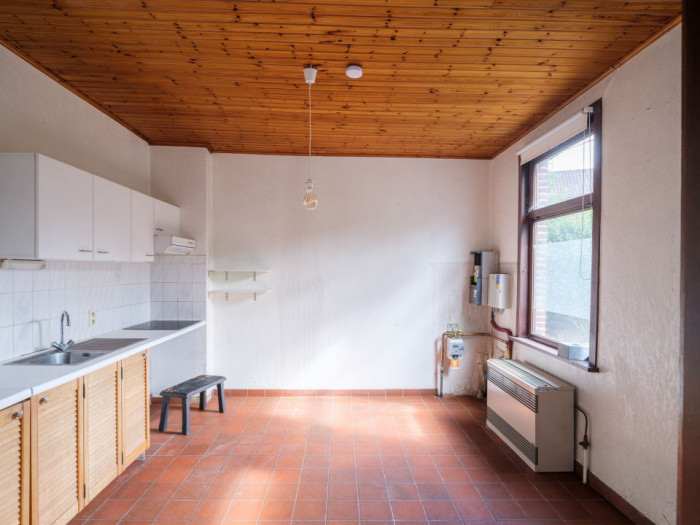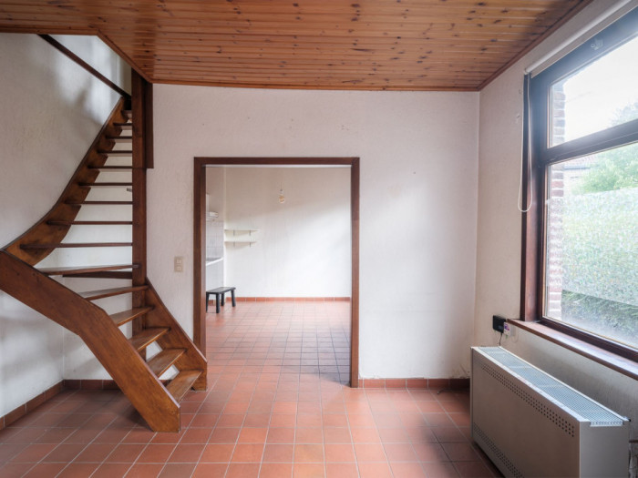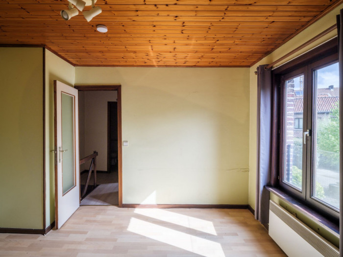 De woning zelf bestaat uit drie bouwlagen en combineert twee vroegere kleinere woningen tot een ruim geheel met doordachte indeling. Op het gelijkvloers vindt u een gezellige woonkamer en een eetplaats met keukenwand. De eerste verdieping telt twee slaapkamers en een badkamer met toilet, douche en lavabo. De zolderverdieping biedt extra bergruimte of potentieel voor een kleine uitbreiding. Elektriciteit is conform gekeurd !